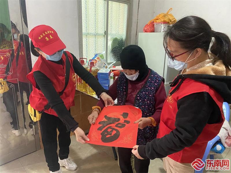 集美區(qū)盧媽媽愛心隊分小隊行動,將早早準(zhǔn)備好的生活用品、春聯(lián)等愛心物資送到黃地村、田頭村、錦園村等隊伍長期關(guān)愛的51戶、53個老人家中,陪老人親切交談、詢問老人近況,幫助老人解決實際困難。