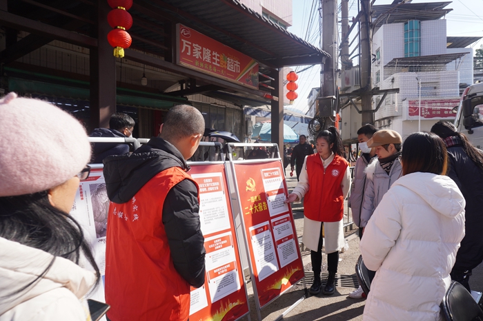 沙縣區(qū)“三下鄉(xiāng)”志愿服務現(xiàn)場志愿者為群眾解讀黨的二十大報告