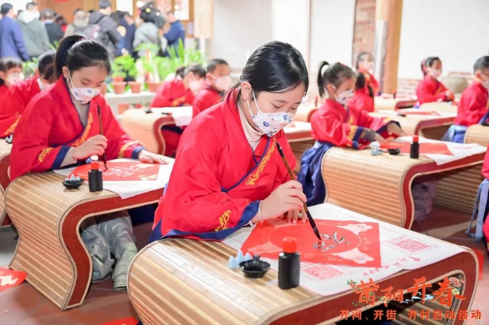 學(xué)堂學(xué)子著古裝、寫福字 涵江區(qū)委文明辦供圖