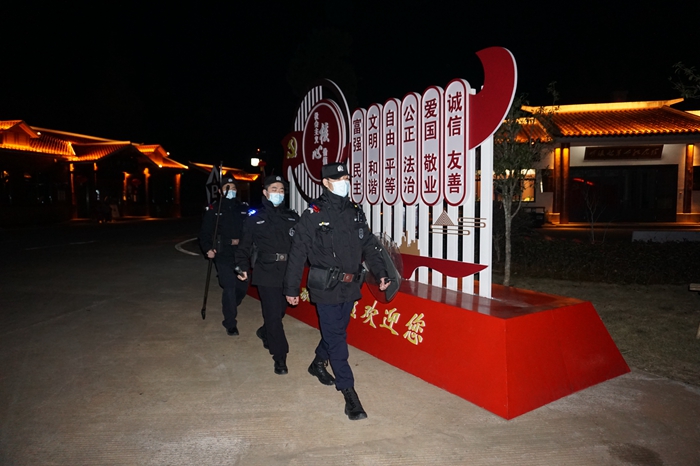 春節(jié)期間公安民警輔警志愿隊夜間巡邏