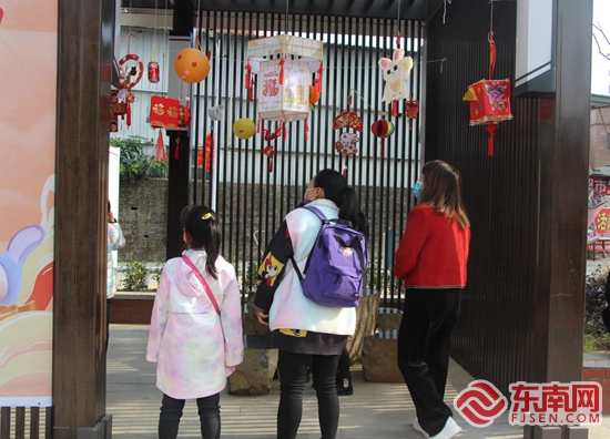 鯉城區(qū)第五實(shí)驗(yàn)小學(xué)學(xué)生肖閩璇制作的花燈便掛在活動(dòng)現(xiàn)場(chǎng),這是她制作的花燈第一次被掛在校外展示?!胺浅i_(kāi)心!沒(méi)想到今年制作的花燈能被展示出來(lái),剛剛我還帶媽媽來(lái)看自己的花燈?!毙ら}璇自豪地說(shuō)道,她的花燈有“?!薄澳昴暧杏唷薄巴米印钡仍兀Mㄟ^(guò)這盞花燈把美好的祝福送給每個(gè)人。