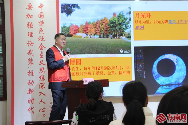 “我眼中的這十年,感受集美巨變”2023年集美區(qū)黨的創(chuàng)新理論宣講暨元宵節(jié)活動現(xiàn)場,集美大學(xué)馬克思學(xué)院原院長肖仕平為居民作宣講。(東南網(wǎng)記者 李霖 攝)