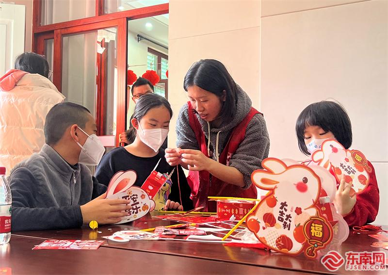 “我眼中的這十年,感受集美巨變”2023年集美區(qū)黨的創(chuàng)新理論宣講暨元宵節(jié)活動現(xiàn)場,志愿者協(xié)助小朋友們制作花燈。(東南網(wǎng)記者 李霖 攝)