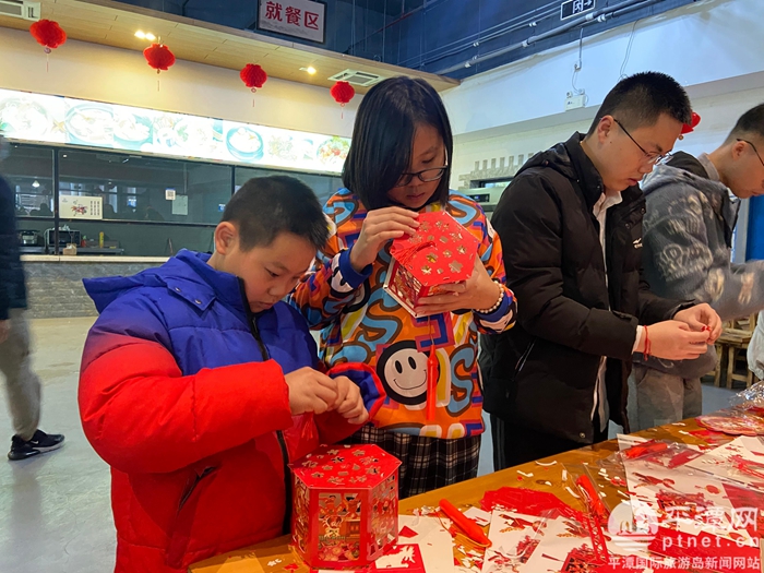 現(xiàn)場,制作元宵特色手提花燈環(huán)節(jié)圈粉不少親子家庭,在家長的協(xié)助下,一個個顏色喜慶、造型別致的元宵特色手提花燈組裝完成。“在臺灣,元宵節(jié)也是做元宵、提燈籠、放煙花,這個活動讓我有家的感覺?!迸_胞馬巧均說。