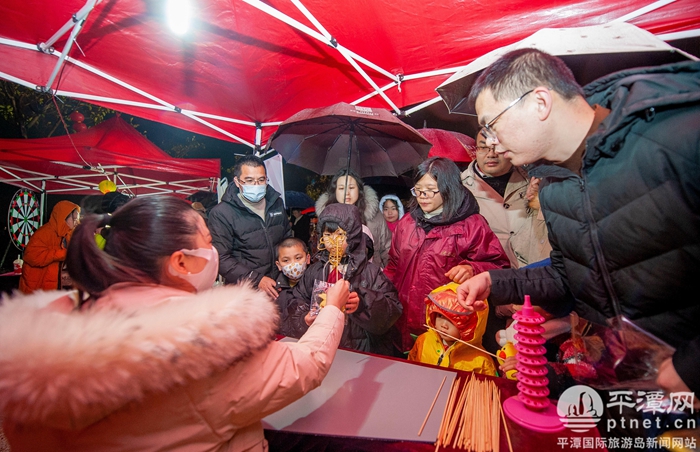 隨后,男女對唱、歌舞快閃、漢服走秀等表演接連呈現(xiàn),現(xiàn)場掌聲和歡呼此起彼伏。同時,互動游戲、趣味燈謎有獎活動輪番上陣,市民熱情參與?,F(xiàn)場還設(shè)置了月下集市,展示創(chuàng)意泥塑、糖畫、水墨漫畫、新春剪紙、漢服體驗等,并準(zhǔn)備了平潭魚丸、多彩元宵供市民免費品嘗?!霸谠压?jié)有這樣一場活動,特別熱鬧,特別喜慶。”市民曾笑弟說。