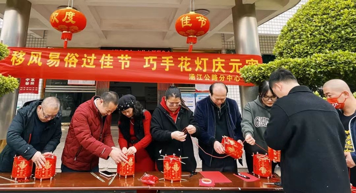 移風(fēng)易俗過佳節(jié),巧手花燈慶元宵。為倡導(dǎo)節(jié)儉綠色過節(jié),提升干部群眾綠色環(huán)保意識(shí),元宵節(jié)前夕,涵江區(qū)各級(jí)文明單位積極開展“移風(fēng)易俗 綠色文明過佳節(jié)”主題實(shí)踐活動(dòng)。2月3日,涵江公路分中心開展“移風(fēng)易俗過佳節(jié),巧手花燈慶元宵”活動(dòng),干部職工們利用春節(jié)回收的紅包、一次性筷子、紅繩等身邊常見的材料來制作傳統(tǒng)的元宵花燈。大家分工協(xié)作,一盞盞喜慶花燈在巧手中成功“綻放”,整個(gè)場面熱鬧、溫馨、其樂融融。同日,涵江區(qū)財(cái)政局開展“節(jié)日感黨恩 共話新時(shí)代——我們的節(jié)日?元宵”文明實(shí)踐活動(dòng)。活動(dòng)現(xiàn)場,大家互相學(xué)習(xí)研究,有的用紅紙剪出窗花和一個(gè)個(gè)活潑可愛的小動(dòng)物;有的認(rèn)真琢磨材料包內(nèi)的每一個(gè)部件,拼接、組裝、粘貼、懸掛,最后再放入LED燈、串上手提桿,一個(gè)個(gè)栩栩如生的兔子燈呈現(xiàn)眼前。通過系列活動(dòng),讓大家在響應(yīng)綠色環(huán)保的同時(shí),進(jìn)一步營造濃濃的元宵節(jié)日氛圍,豐富了干部職工們的文化生活。