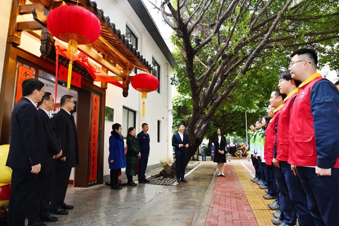 文明風(fēng)2月11日訊 為進(jìn)一步支持服務(wù)新時(shí)代文明實(shí)踐中心建設(shè),在閩都文化核心圈打造電力文明窗口典范,2月9日上午,國網(wǎng)福州供電公司舉辦“雙滿意”新時(shí)代文明實(shí)踐基地揭牌儀式,國網(wǎng)福建省電力有限公司黨委副書記姜啟亮、福州市委文明辦副主任陳甦、國網(wǎng)福州供電公司總經(jīng)理謝輝、黨委書記黃海出席并共同為基地揭牌,三坊七巷社區(qū)、消防救援站、“雙滿意”共產(chǎn)黨員服務(wù)隊(duì)和新時(shí)代文明實(shí)踐志愿服務(wù)隊(duì)隊(duì)員參加。