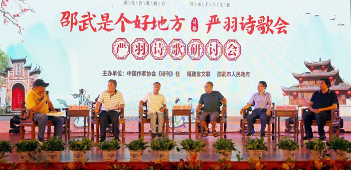 2022年7月28日,由中國作協(xié)《詩刊》社、福建省文聯(lián)、邵武市委、市政府聯(lián)合舉辦的“邵武是個好地方·嚴(yán)羽詩歌會”采風(fēng)活動在和平古鎮(zhèn)文創(chuàng)園舉辦。圖為嚴(yán)羽詩歌研討會上,專家學(xué)者圍繞《滄浪詩話》進(jìn)行深度交流。