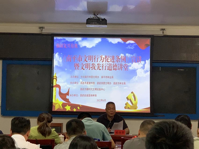 2022年6月17日,邵武市委文明辦和市林業(yè)局聯(lián)合承辦由南平市委文明辦和南平市林業(yè)局主辦的“強(qiáng)國復(fù)興有我”《南平市文明行為促進(jìn)條例》宣講暨文明我先行道德講堂
