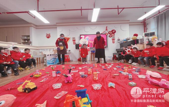 在平潭如意幼兒園,大家一起參加猜燈謎活動。