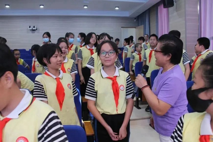 第四屆龍巖市助人為樂道德模范羅金釵在講座上與小學(xué)生互動