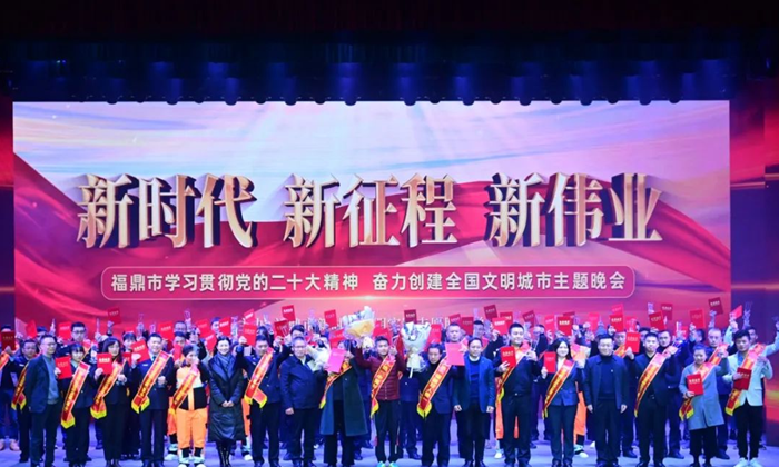 創(chuàng)建全國文明城市工作的兩年來,福鼎市不斷優(yōu)化人居環(huán)境,開展市容市貌專項整治,開展各類型文明實(shí)踐志愿服務(wù)活動,加大“講文明 樹新風(fēng)”宣傳力度,城市整體文明提升成果喜人。本次晚會以“文明”貫穿始終,用形式新穎的歌舞詮釋“文明”的內(nèi)涵,同時也以“表揚(yáng)先進(jìn)”的環(huán)節(jié)向“文明先鋒”致敬。