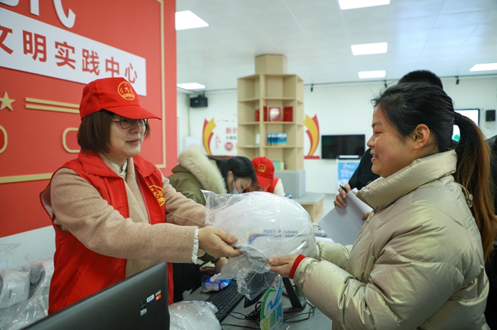 文明風2月23日訊 “今天,連江送的“3C安全頭盔”,你領取了嘛?”“領了領了,今天我還替同事領了呢,真不錯!”