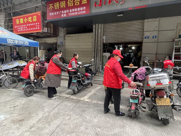 城關街道復康社區(qū)新時代文明實踐站組織志愿者勸導文明停車