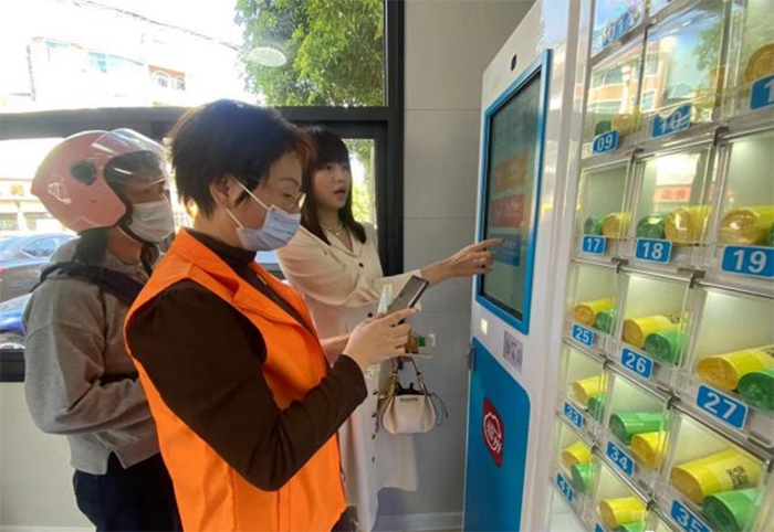 周邊商戶聽到語音提示出門扔垃圾,吳開梅 攝