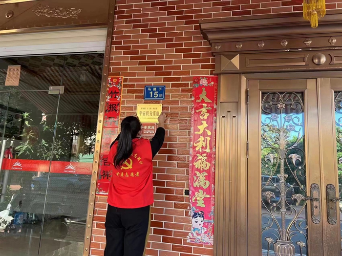 志愿者上門懸掛“平安積分家庭”牌匾 供圖:巖溪鎮(zhèn)高瀨村