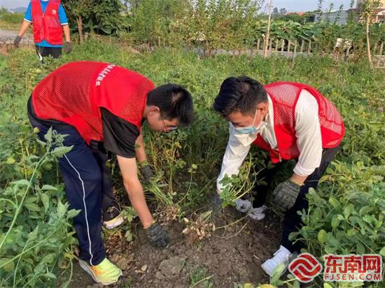志愿者參與愛心農場農作物維護(田頭村新時代文明實踐站供圖)