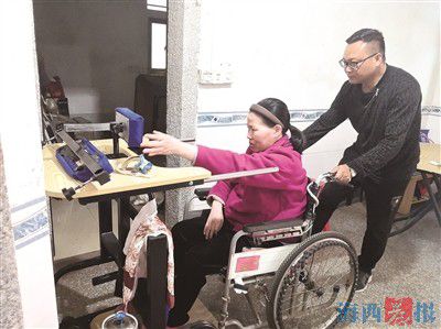 陳金鈴協(xié)助妻子進(jìn)行康復(fù)訓(xùn)練。記者陳麗攝