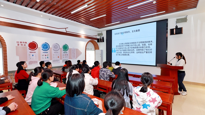 活動(dòng)現(xiàn)場(chǎng),學(xué)生和家長(zhǎng)共同參與游戲環(huán)節(jié)——“你我‘心’同行,讓我做你的‘眼睛’”,孩子們和父母敞開心扉,共同交流,促進(jìn)了親子之間的相互信任和依賴;“大手牽小手 文明陽(yáng)光路上一起走”為主題的心理健康知識(shí)講座和視頻,讓父母深知自己首先要時(shí)時(shí)處處做好表率,當(dāng)好文明人,才能給孩子樹立好榜樣,自覺養(yǎng)成文明的好習(xí)慣;“成長(zhǎng)路上,感恩有你”互動(dòng)按摩操則讓孩子用幫父母按摩的方式感恩父母多年來的辛苦付出,進(jìn)一步拉近了親子關(guān)系。