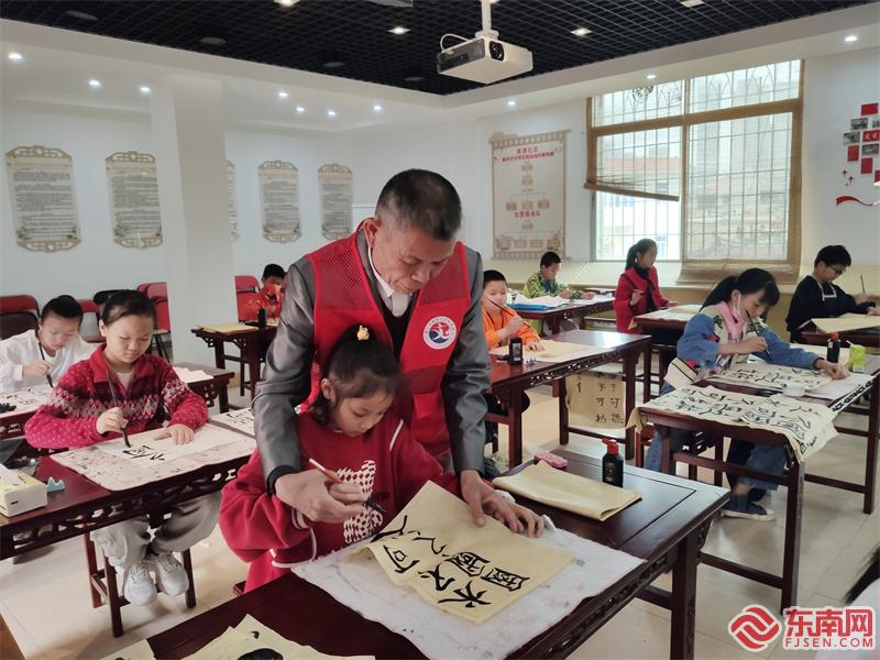 高浦社區(qū)青少年用書(shū)法表達(dá)愛(ài)護(hù)水資源,共護(hù)母親河的決心(黃珺珺 攝)