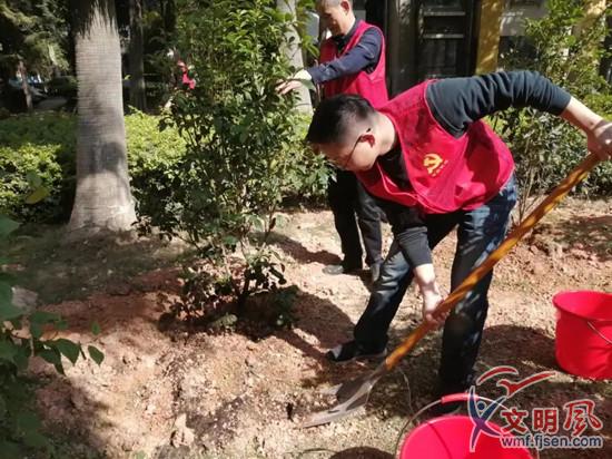 金海社區(qū)、金安社區(qū)開展“添蔭守護(hù)家園 共建綠水青山”學(xué)雷鋒月植樹活動。大家熱情高漲,揮動勞動工具挖好一個(gè)個(gè)樹坑,合力植入一棵棵桂花樹苗,用土填滿壓緊,把水倒進(jìn)土里,讓樹苗“喝”飽。經(jīng)過辛勤勞作,上百棵樹苗順利種下,大家期待著金桂飄香的美好生活環(huán)境。