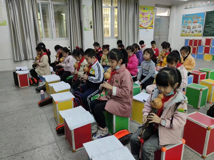 涵江區(qū)江口鎮(zhèn)鄉(xiāng)村“復興少年宮”葫蘆絲演奏特色課程 涵江區(qū)委文明辦 供圖