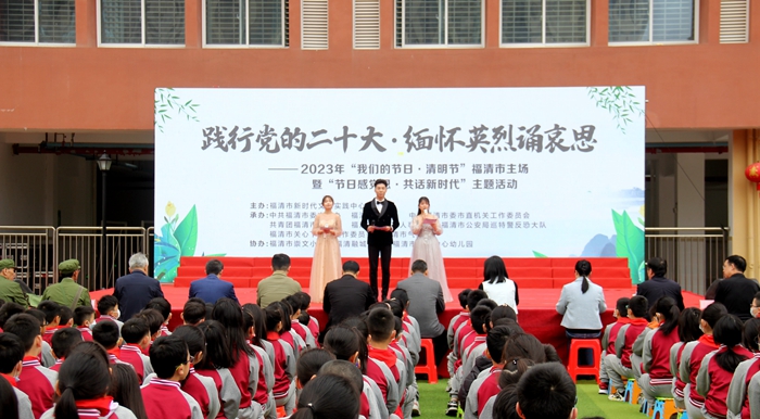 文明風(fēng)4月4日訊 為了讓未成年人感受今天幸福生活的來之不易,教育和引導(dǎo)青少年慎終追遠(yuǎn)、緬懷先輩、銘記革命先烈光榮事跡,4月3日,“踐行黨的二十大 緬懷英烈誦哀思”——2023年“我們的節(jié)日·清明”福清市主場暨“節(jié)日感黨恩 共話新時代”主題活動在福清市崇文小學(xué)舉行,共500多人參加。