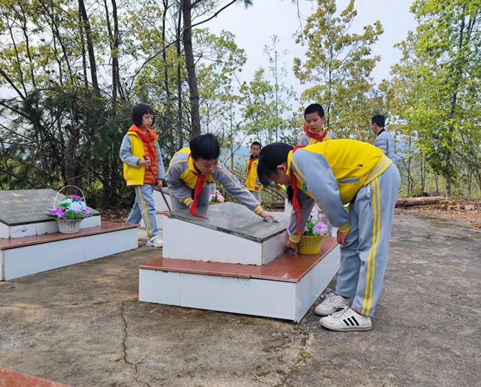 南霞鄉(xiāng)中心小學(xué)組織學(xué)生清掃烈士墓