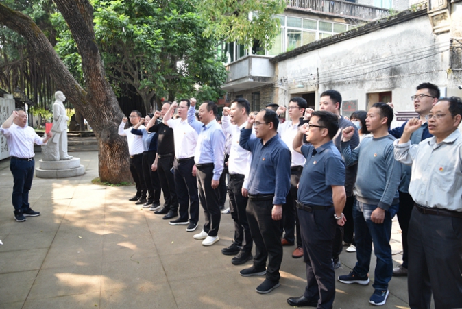 吳石故居廣場前,全體黨員同志滿懷崇敬的心情,面向鮮紅的黨旗,舉起右拳重溫入黨誓詞,一句句錚錚誓言,讓黨員重溫入黨宣誓時的莊嚴承諾和堅定決心,在黨旗下接受心靈的凈化和洗禮,始終牢記共產黨員的政治責任和歷史使命,保持爭先進位的奮斗姿態(tài),用實際行動切實發(fā)揮黨員的先鋒模范作用。