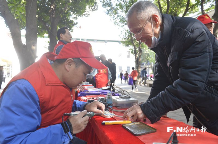 黨員志愿者為居民修理電器(福州日?qǐng)?bào)記者 池遠(yuǎn) 攝)