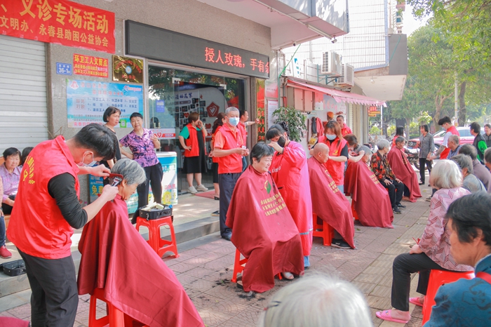 4月17日,永春開展縣新業(yè)態(tài)新就業(yè)群體義剪、義診專場活動。攝影:鄭志林。圖為活動現(xiàn)場
