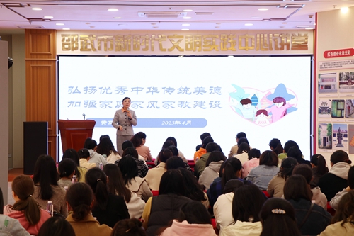 南平市政協(xié)副主席、南平市中華職教社主任黃亞惠以《弘揚優(yōu)秀中華傳統(tǒng)美德 加強家庭家教家風建設》為題宣講