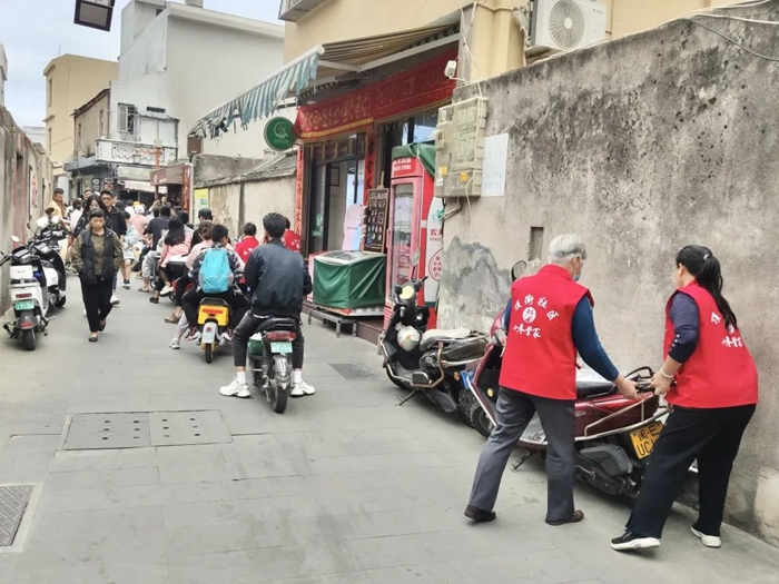 志愿者開展文明勸導(dǎo)、規(guī)范車輛擺放等系列行動