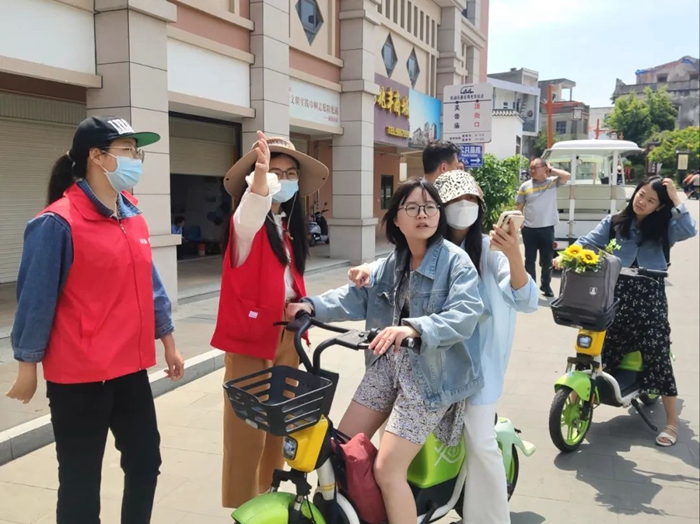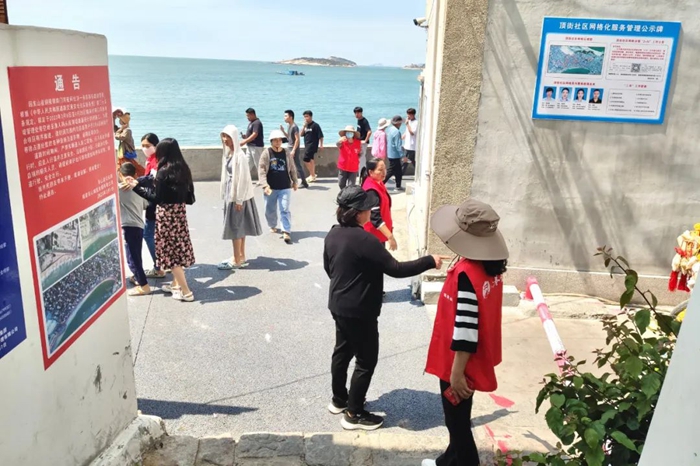 東山縣銅陵鎮(zhèn)頂街社區(qū),依山傍海,風(fēng)光優(yōu)美,4月28日,社區(qū)志愿者活躍在通往國家4A級風(fēng)動石景區(qū)、全國重點文物保護單位東山關(guān)帝廟的頂街路、城腳路、南門海堤,對占道攤點、亂丟飲料瓶、無序停放車輛等行為進行“文明勸導(dǎo)”……她們的“志愿紅”已成為銅陵古城一道靚麗的移動“風(fēng)景線”。