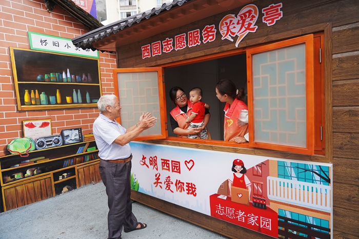 福鼎市桐山街道西園社區(qū)新時代文明實踐站改造閑置空地為志愿服務(wù)關(guān)愛亭
