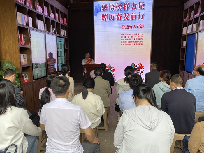 文明風5月12日訊 榜樣的力量是無窮的,如春風化雨,潤物細無聲。為充分發(fā)揮身邊好人榜樣帶動引領作用,大力弘揚社會主義核心價值觀,推動思想道德建設工作,5月11日上午,由鼓樓區(qū)新時代文明實踐中心主辦,鼓樓區(qū)委文明辦、華大街道新時代文明實踐所、思兒亭社區(qū)新時代文明實踐站、屏東社區(qū)新時代文明實踐站承辦的“感悟榜樣力量 踔厲奮發(fā)前行”身邊好人宣講在鼓樓區(qū)新時代文明實踐中心內舉辦。