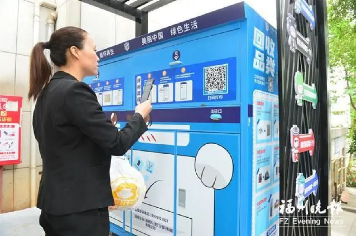群升國(guó)際御園小區(qū)的這個(gè)回收箱,可讓廢舊物變現(xiàn)。(福州晚報(bào)供圖)