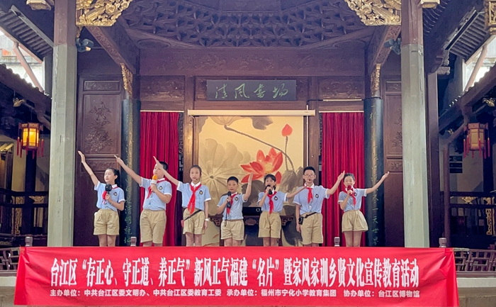 文明風(fēng)5月25日訊 在“六一”國際兒童節(jié)到來之際,為傳承家風(fēng)家訓(xùn)鄉(xiāng)賢文化,引導(dǎo)未成年人“扣好人生第一??圩印?,5月24日,福州市寧化小學(xué)教育集團(tuán)的師生們來到市級(jí)家風(fēng)家訓(xùn)鄉(xiāng)賢文化館、臺(tái)江區(qū)新時(shí)代文明實(shí)踐家風(fēng)家訓(xùn)傳承基地一一古田會(huì)館,開展“臺(tái)江區(qū)“存正心、守正道、養(yǎng)正氣”新風(fēng)正氣福建“名片”暨家風(fēng)家訓(xùn)鄉(xiāng)賢文化宣傳教育活動(dòng)。