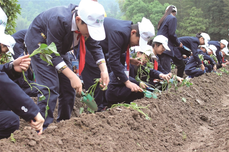 同學(xué)們?cè)趧趧?dòng)教育實(shí)踐基地勞作