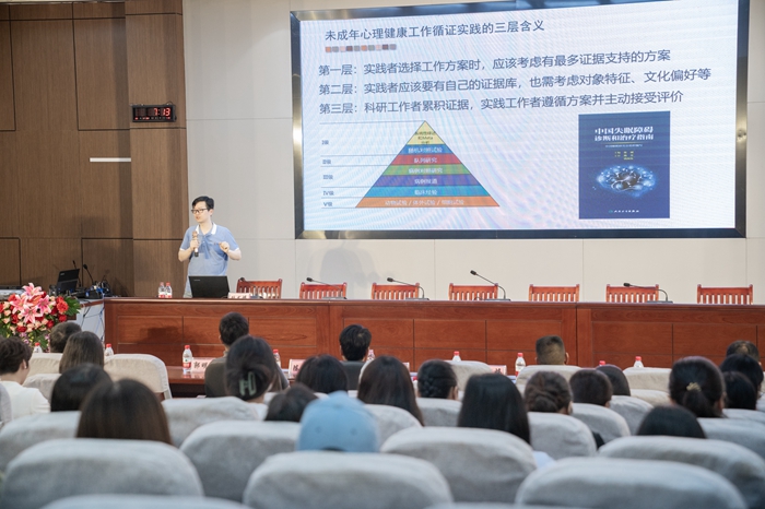 主會場,福建醫(yī)科大學應用心理學系副教授張書幃論述了青少年心理健康工作中循證實踐的重要性。福建師范大學心理學院教授郭明春從自身經歷講起,深入淺出闡釋孩子出現心理問題的原因及解決方法。