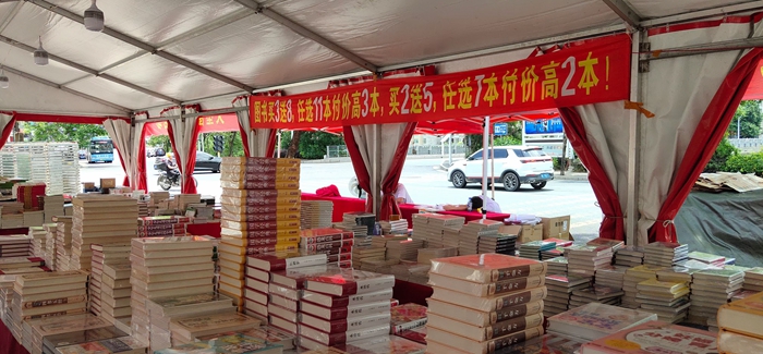 5月31日至6月11日,在閩輝購(gòu)物廣場(chǎng)持續(xù)開(kāi)展大型正版圖書(shū)贈(zèng)閱惠民活動(dòng),活動(dòng)現(xiàn)場(chǎng)提供了文史、藝術(shù)、教育、醫(yī)療保健、少兒等各類(lèi)書(shū)籍及世界名著等上萬(wàn)冊(cè)正版書(shū)刊,供市民免費(fèi)閱讀和選購(gòu)。購(gòu)買(mǎi)書(shū)籍享有“買(mǎi)三送八”“買(mǎi)二送五”等優(yōu)惠。教育局組織轄區(qū)學(xué)校學(xué)生到現(xiàn)場(chǎng)參與閱讀或購(gòu)書(shū)活動(dòng),郵政公司按學(xué)校在校生數(shù)發(fā)放閱讀打卡券,學(xué)生到現(xiàn)場(chǎng)閱讀或購(gòu)書(shū)后每人可獲得10元印章券,印章券由所在學(xué)校各班級(jí)統(tǒng)一收集,換成同等價(jià)格圖書(shū)捐贈(zèng)給學(xué)校。