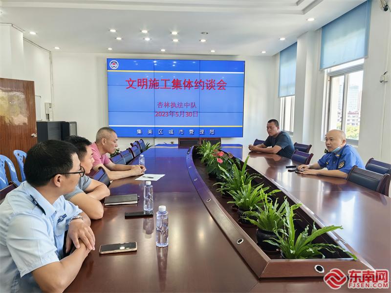 5月30日,杏林中隊(duì)統(tǒng)一集體約談在建工地企業(yè)負(fù)責(zé)人(蘇麗娜 攝)