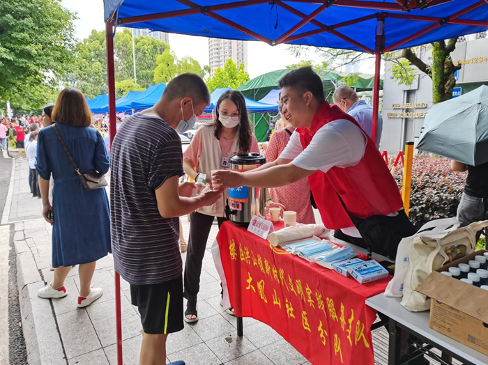 洪山鎮(zhèn)聯(lián)合大凰山社區(qū)與福州大學(xué)至誠(chéng)學(xué)院在教院附中門口開展為高考學(xué)子保駕護(hù)航志愿服務(wù)活動(dòng)。圖為大凰山社區(qū)為考生及陪同的家長(zhǎng)、值勤民警準(zhǔn)備了遮陽(yáng)篷、飲料、口罩等日常補(bǔ)給用品。