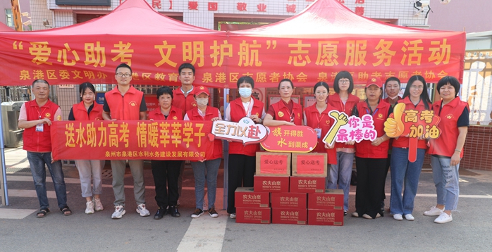 志愿者為考生送水(泉港區(qū)委文明辦供圖)
