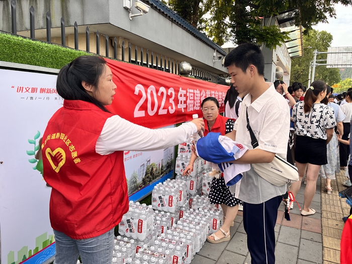 考生領(lǐng)取愛心礦泉水 馮悅 攝