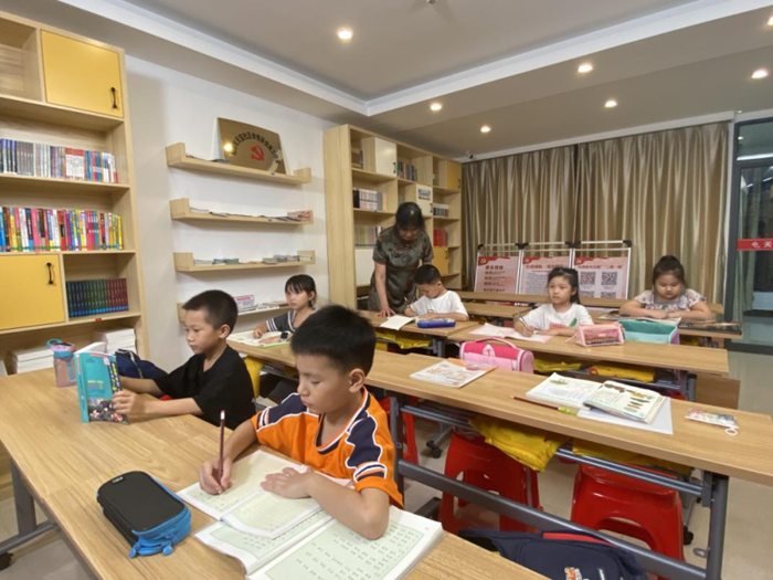 龍江街道龍江壹號小區(qū)黨支部書記李秀英在“四點半課堂”開展“課后陪伴”志愿服務。 龍江街道天寶社區(qū)離退休干部黨支部供圖