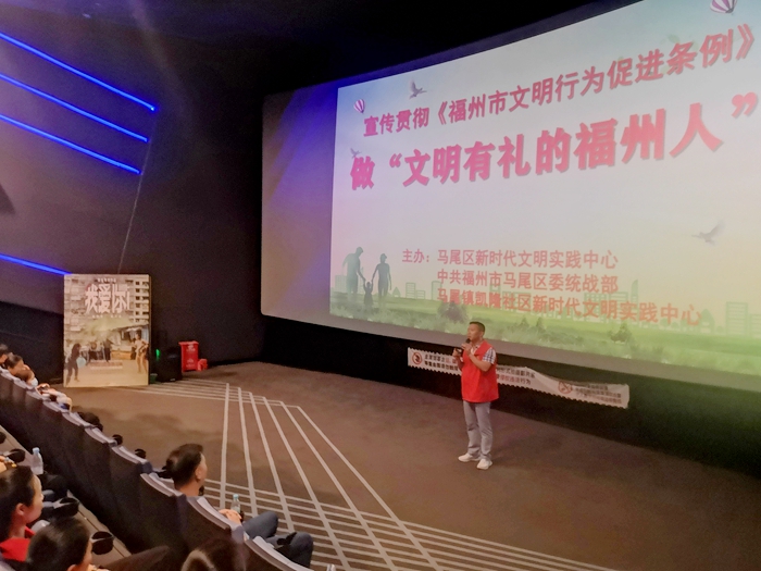 馬尾區(qū)馬尾鎮(zhèn)幸福藍(lán)海影院開(kāi)展做文明有禮的福州人宣傳活動(dòng)