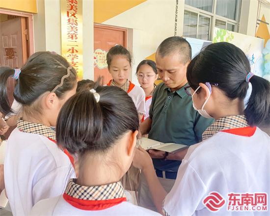 “陳叔叔,能請(qǐng)您簽個(gè)名嗎?”6月26日上午,廈門(mén)集美第二小學(xué)開(kāi)展道德模范進(jìn)校園活動(dòng),邀請(qǐng)廈門(mén)“十大平民英雄”“思明區(qū)見(jiàn)義勇為模范”陳遠(yuǎn)樂(lè)到場(chǎng)宣講模范事跡,20余名校園小記者與道德模范面對(duì)面交流采訪,感受榜樣力量。