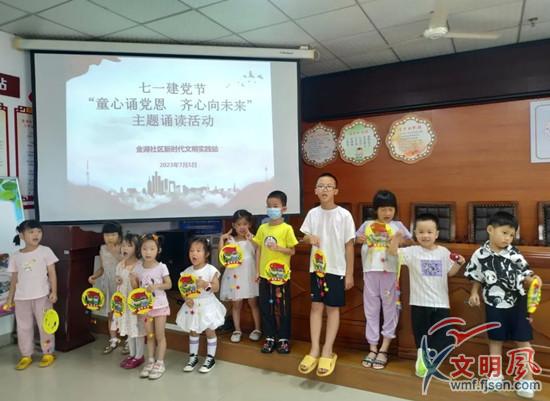 湖邊社區(qū)、金湖社區(qū)、五通社區(qū)開展七一建黨節(jié)“童心誦黨恩 齊心向未來”主題誦讀活動(dòng),與居民一起回顧黨史、共讀紅色故事、制作“紅色”掛飾……用簡單樸實(shí)的方式表達(dá)對(duì)黨的熱愛。