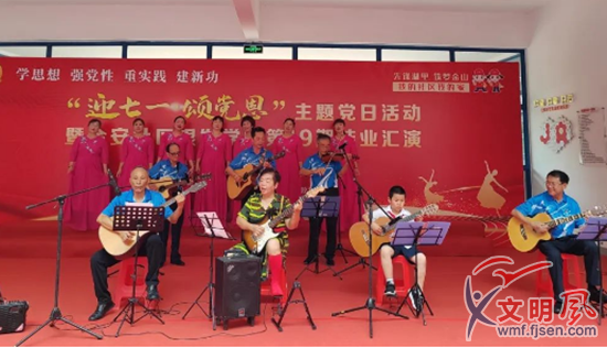 為謳歌黨的光輝歷程,發(fā)揚(yáng)黨的優(yōu)良傳統(tǒng),營造喜慶的節(jié)日氣氛,后坑社區(qū)、金林社區(qū)、金安社區(qū)分別開展“永遠(yuǎn)跟黨走 筑夢(mèng)新征程”“凝心鑄魂跟黨走 團(tuán)結(jié)奮斗新征程”“迎七一 頌黨恩”文藝匯演。